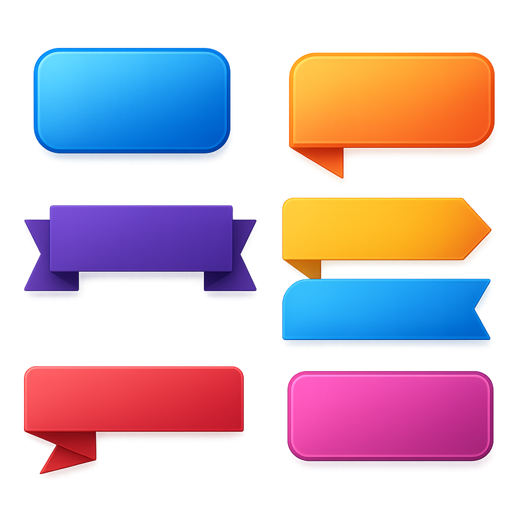 Get this stunning collection of 3D vector text box PNG designs with smooth gradients, glossy lighting, and realistic shadows. These colorful label shapes include blue, orange, yellow, red, pink, and purple variants — ideal for banners, tags, infographics, and promotional templates. Each text box comes with a transparent background and clean edges, making them ready for instant use in Photoshop, Canva, or any design software.