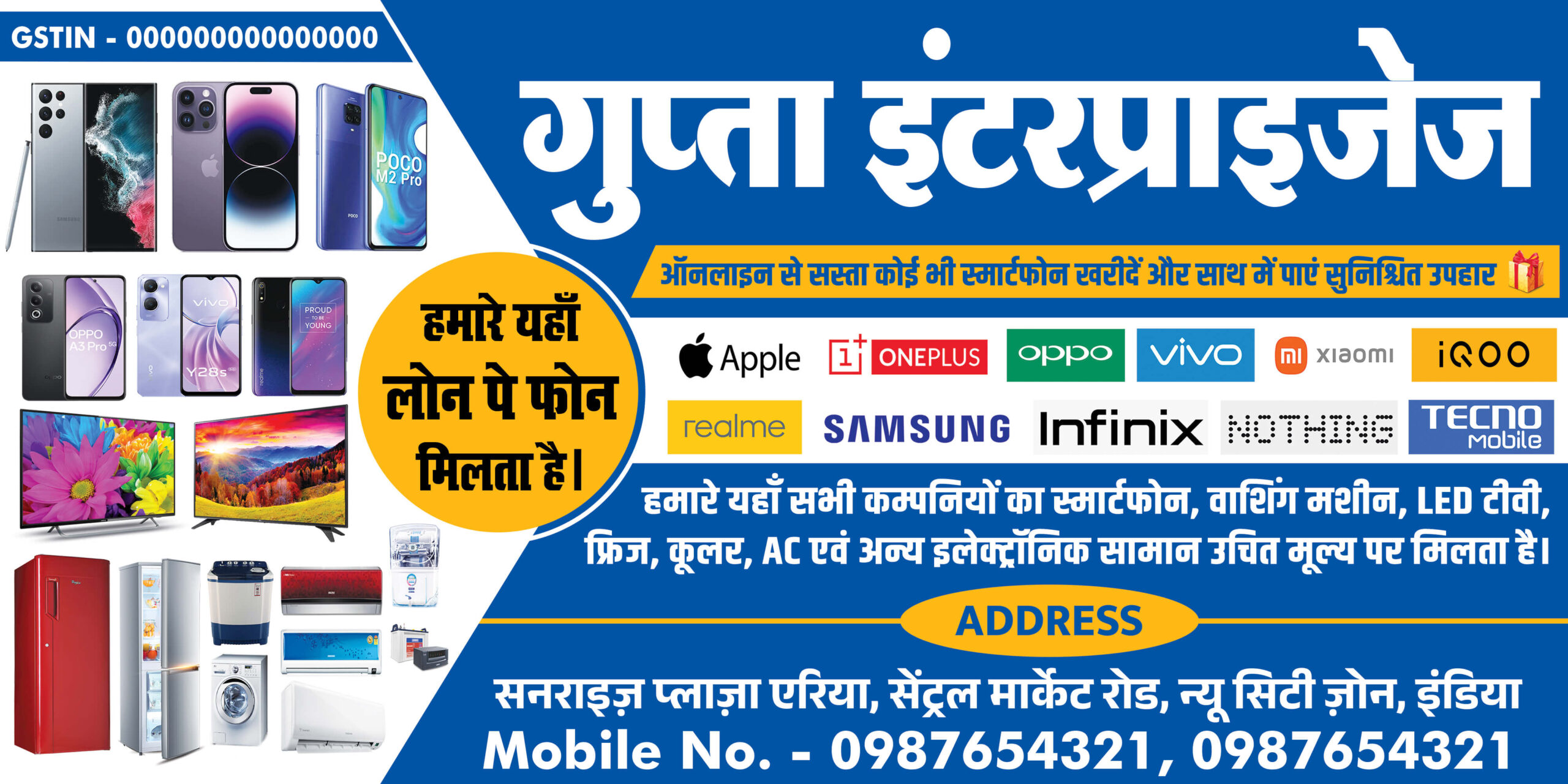 Professional electronics shop banner PSD template for smartphone store and mobile shop promotion. High-quality editable flex banner design suitable for mobile showroom, gadget shop, smartphone retailer marketing and print advertising.
