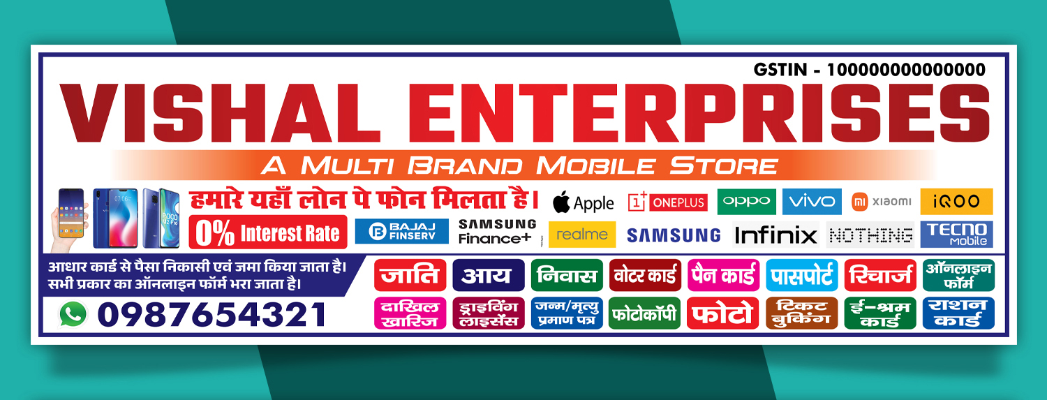 Perfect for mobile shop flex banner, smartphone showroom poster design, electronics shop hoarding, and retail mobile store front advertising. The composition is balanced for large format flex printing and ensures high visibility from distance, making it suitable for outdoor banners and shop front boards.