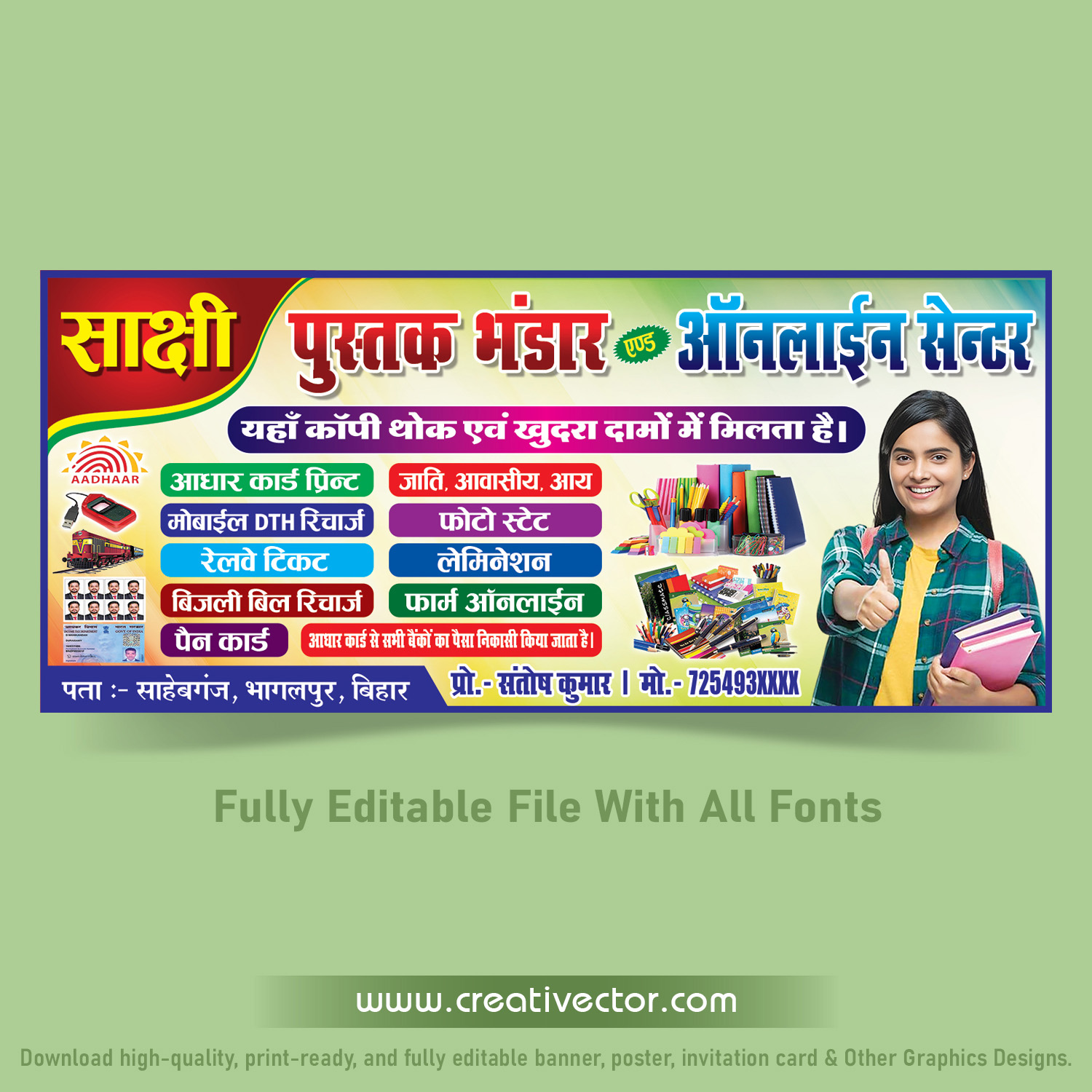 Pustak Bhandar & Online Centre Banner Design | Book Store, Digital Service Centre & CSC Center Banner PSD
