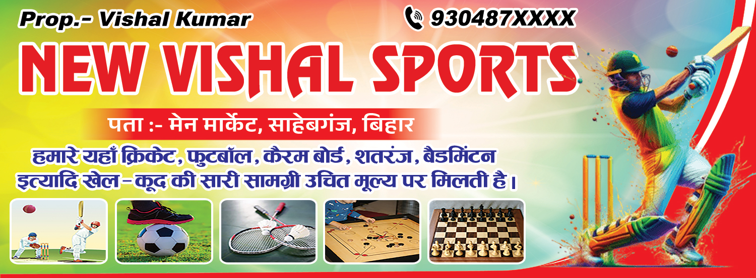 The banner is suitable for promoting cricket kits, football items, badminton rackets, carrom boards, chess sets and other indoor and outdoor sports products. The PSD file is fully editable, allowing easy customization of text, colors, images and layout elements as per shop requirements. You can quickly update product categories, phone numbers and location details without affecting design quality.